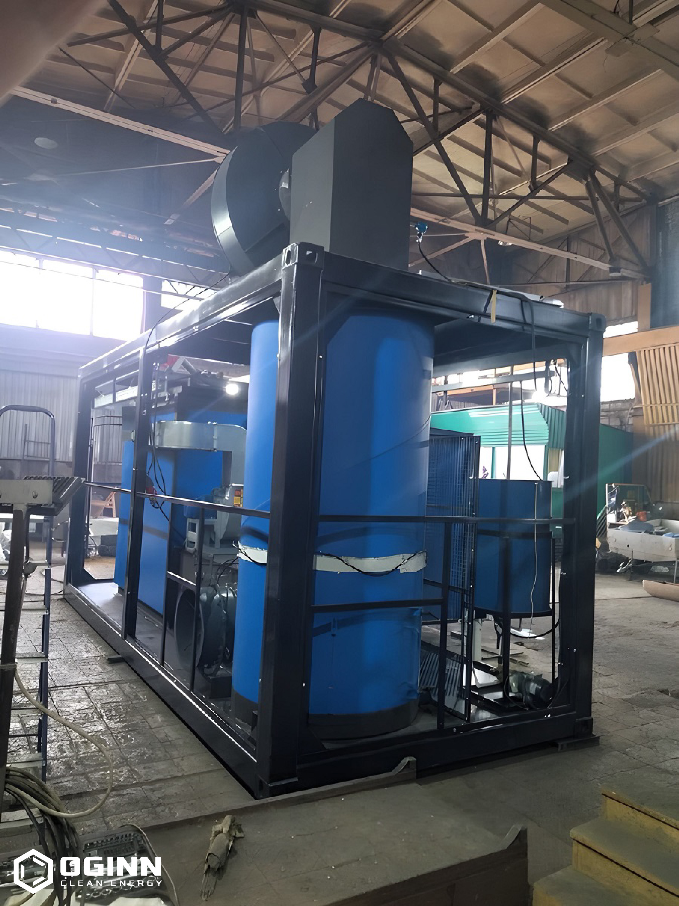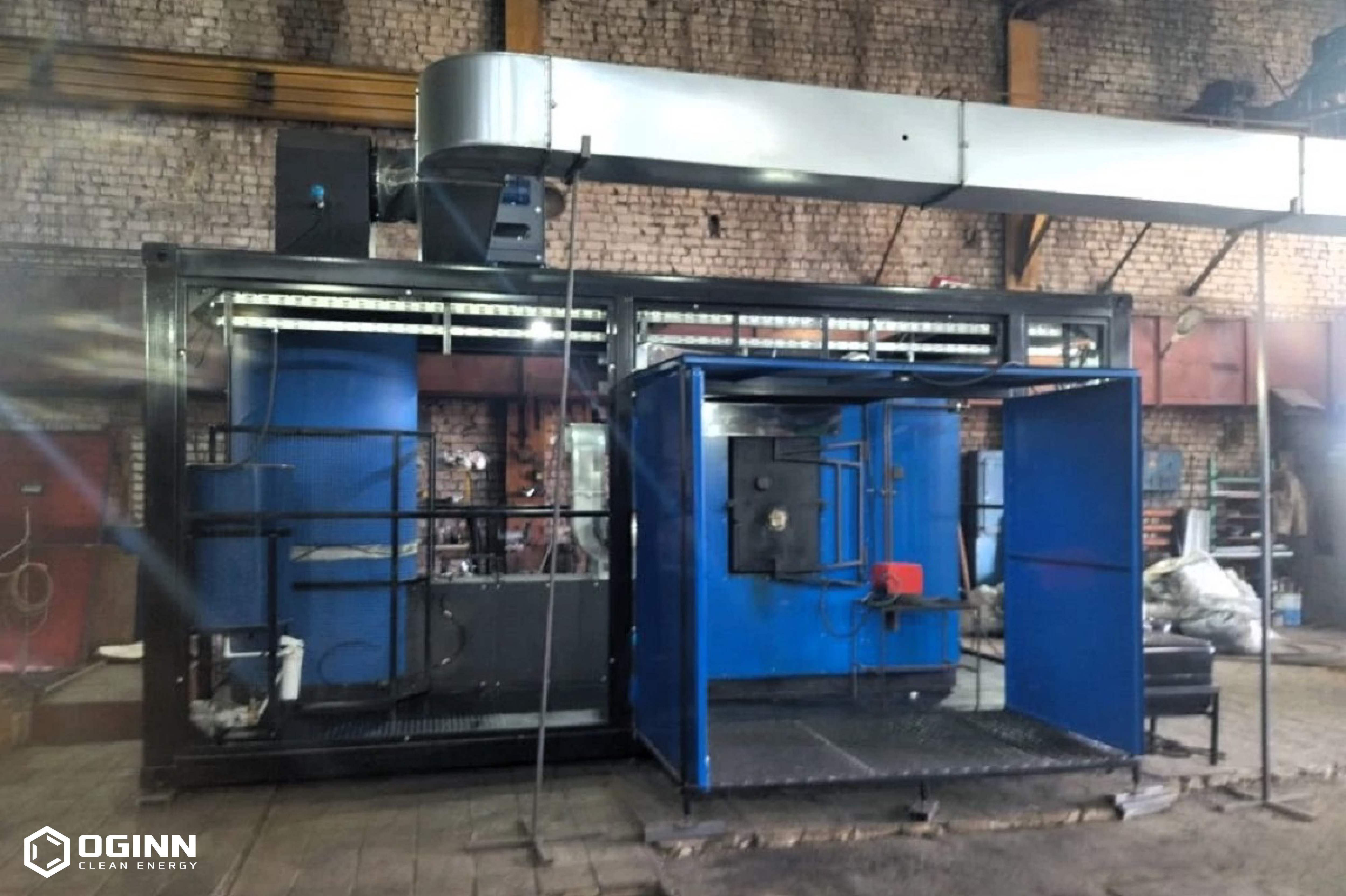 Комбинированный термический процесс (пиролиз + окисление) органической составляющей отходов при температурах до 900 °C в высокотемпературном реакторе (топке). Минимизация уровня СО и максимизация СО2 в отходящих газах.